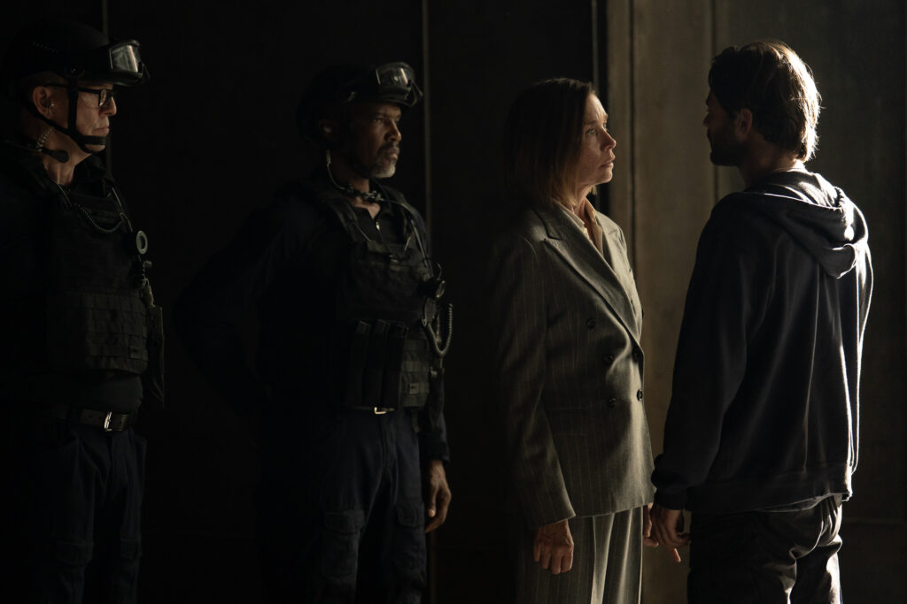 Gabriela confronts Sinatra in her office about Jane. She thinks she’s unstable. Understatement of the century. Gabriela expresses that she thinks Jane is coming for her next. She even presses her and asks her about Alex, but Sinatra tells her not to say that name again. But Gabriela refuses to drop it. Jane briefs the security team about Link and his crew outside the bunker, while tracking Gabriela’s location. Sinatra’s daughter and Presley manage to hack into the security camera footage, finding Jeremy’s location. She even gives their wristbands access to go down and investigate in person. Jeremy is still hesitant to have Robinson around, but she cared so much about Cal that she feels responsible for making sure he’s okay.