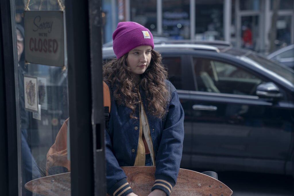 We then get a flashback to Daisy skateboarding through Toronto. She arrives at a vintage clothing store and walks past a blonde woman with a bob haircut, and before the camera can even pan around, I KNOW IT’S JUNE!!!!!!!!! I SCREAMED! At home in the bathroom, we see that Agnes has gotten her first period. And here we go!