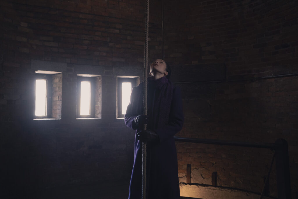 As she heads to school, Agnes begins to wonder if anyone will notice now that she’s had her period. When she arrives, she leaves Daisy in the lobby and runs upstairs alone. She reaches a room at the top of the building with a long rope and begins to joyfully pull on it to ring a large bell that chimes throughout the school. Everyone begins to hear it and knows that it means that someone has gotten their first period.