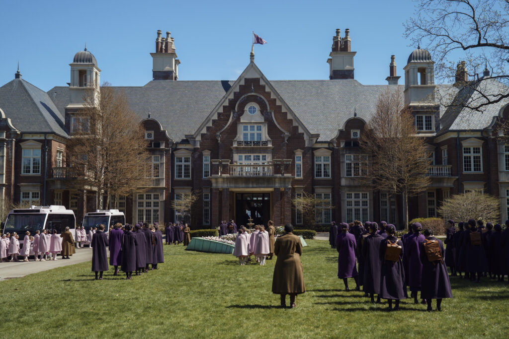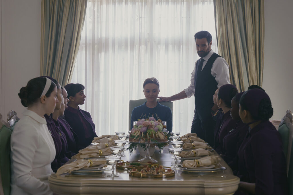 THE TESTAMENTS – “Precious Flowers” – In the halls of Aunt Lydia’s premarital preparatory academy, the finest in Gilead, Agnes is assigned to mentor a new Pearl Girl, and a fragile alliance begins. (Disney/Russ Martin) CHASE INFINITI