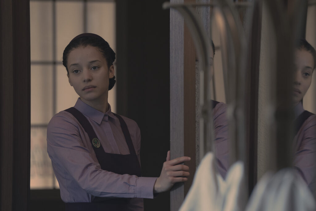 THE TESTAMENTS – “Precious Flowers” – In the halls of Aunt Lydia’s premarital preparatory academy, the finest in Gilead, Agnes is assigned to mentor a new Pearl Girl, and a fragile alliance begins. (Disney/Russ Martin) EVA FOOTE